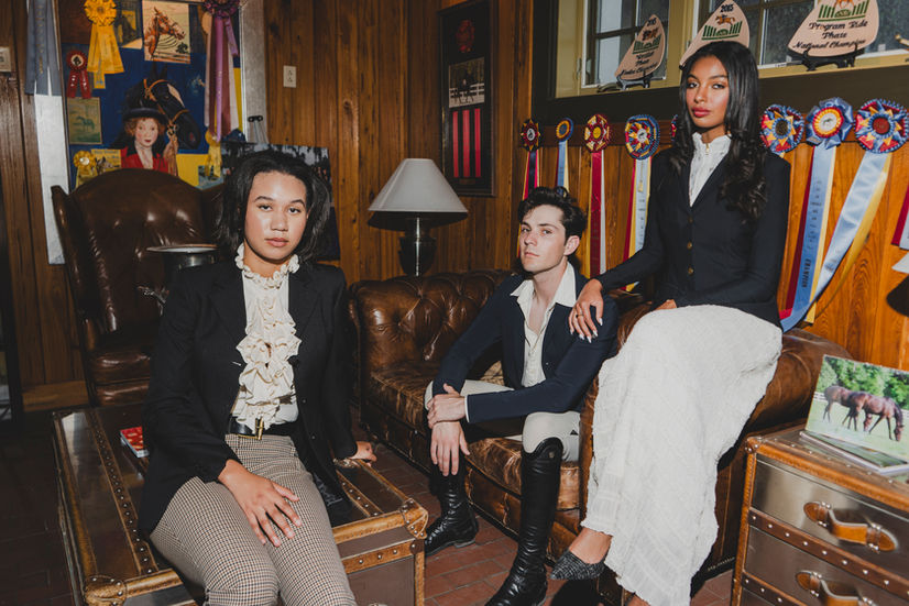 A high-fashion editorial featuring athletes from the championship-winning SCAD Equestrian team. Captured at the Ronald C. Waranch Equestrian Center, the narrative explores the juxtaposition of avant-garde couture against a raw, utilitarian backdrop. By integrating live horses into the composition, we elevated the technical complexity and emotional stakes of the shoot, showcasing curated pieces from emerging SCAD designers.